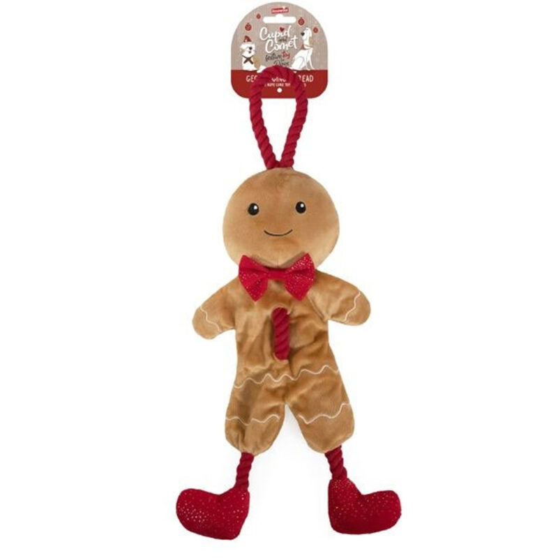 Get ready for playtime with this adorable Gingerbread Man dog toy.