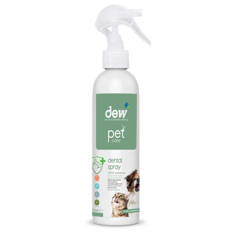 ENVIRONMENTAL IMPACT: Dew Pet #Dental Spray is refillable, saving you money and reducing plastic waste and, because it is 100% biodegradable, it is kind to the environment, even better still, our advanced manufacturing facility doesn’t produce any nasty waste by-products when we create Dew products. Dew – the world’s kindest cleaning product.